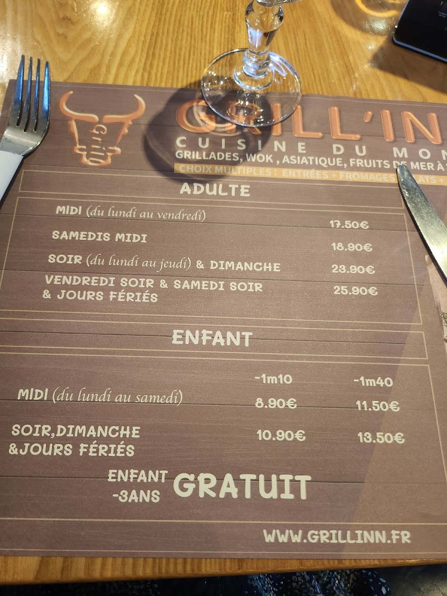 GRILL' INN - 87000 Limoges Menu